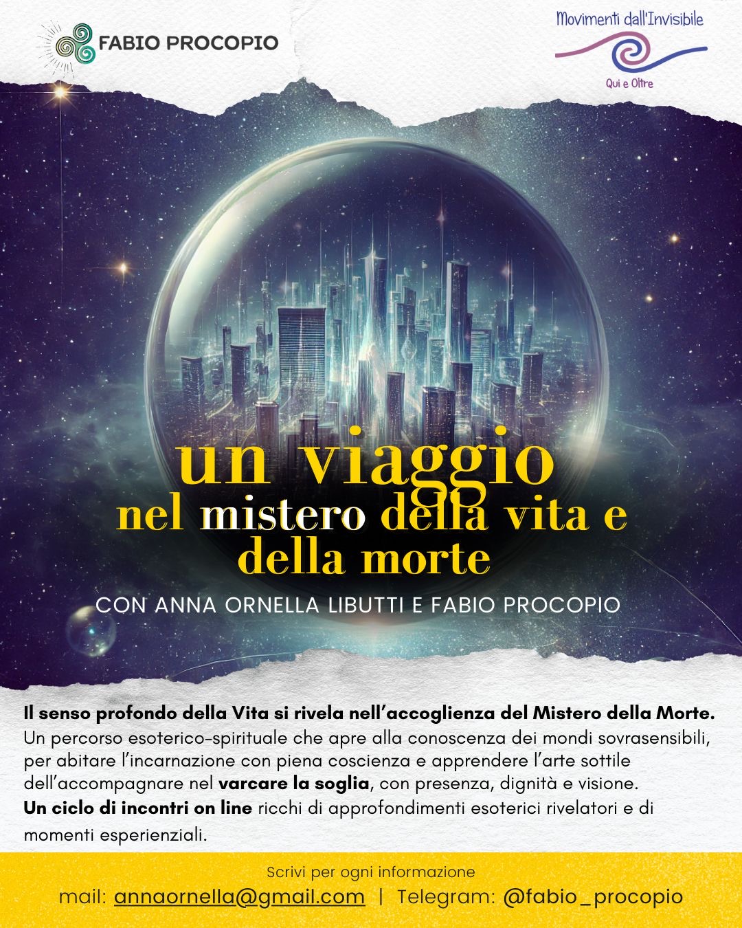 Il senso profondo della Vita si rivela solo quando si trova il coraggio di accogliere il Mistero della Morte. Ciò che comunemente viene temuto, rimosso o reso astratto diventa, in questo percorso di formazione, una chiave essenziale di conoscenza e trasformazione interiore.